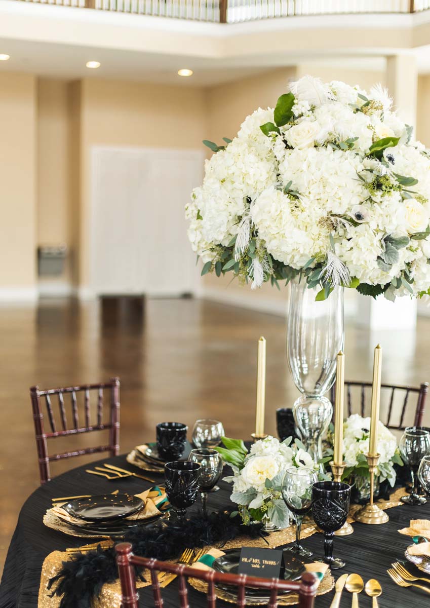Last month, I had the privilege of taking part in a Great Gatsby-themed styled shoot at a beautiful DFW wedding venue, The Pearl at Sabine Creek. I love that inspiration can be drawn from nearly anything when you begin to plan the “theme” of your wedding. This roaring 20s wedding style is elegant and classy with a hint of lavish. The vendors who made this vision come to life did a fabulous job of incorporating the lavishness, decadence, and love for a grand party painted in the story of Jay Gatsby.